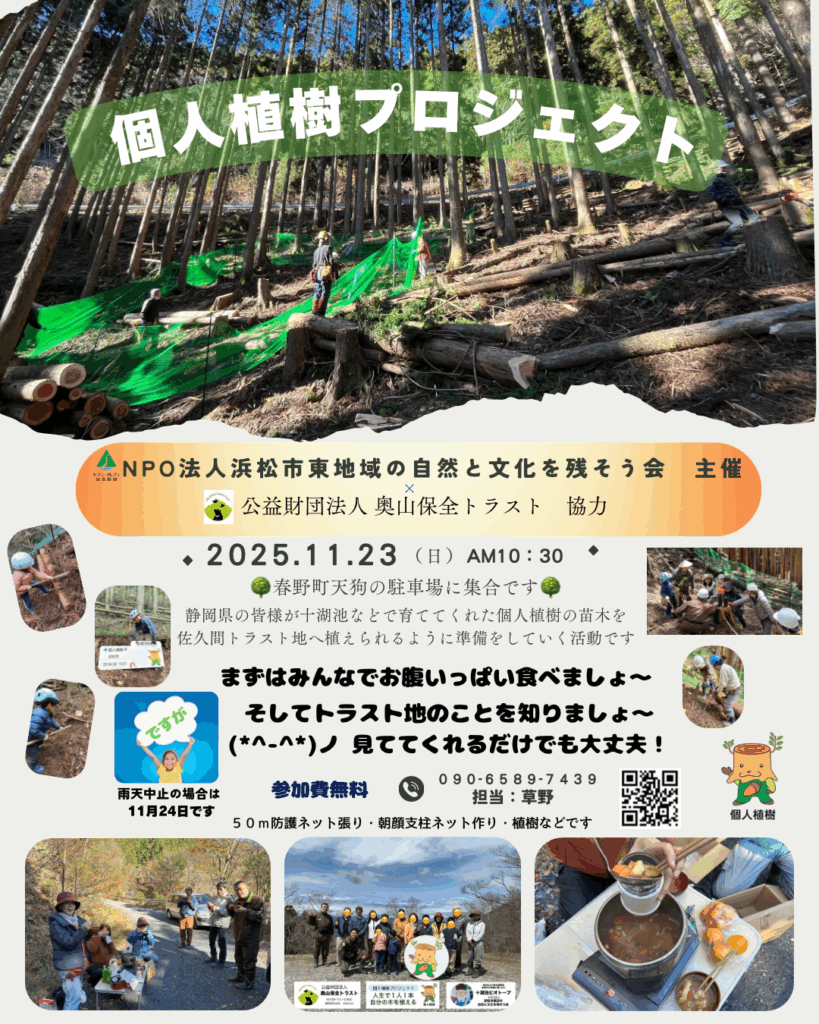 全国にある放置人工林などの「天然更新や広葉樹林にする予定の場所」にも植えさせてもらうことで社会問題の解決につなげてもいきますので、楽しみだけではありません。
